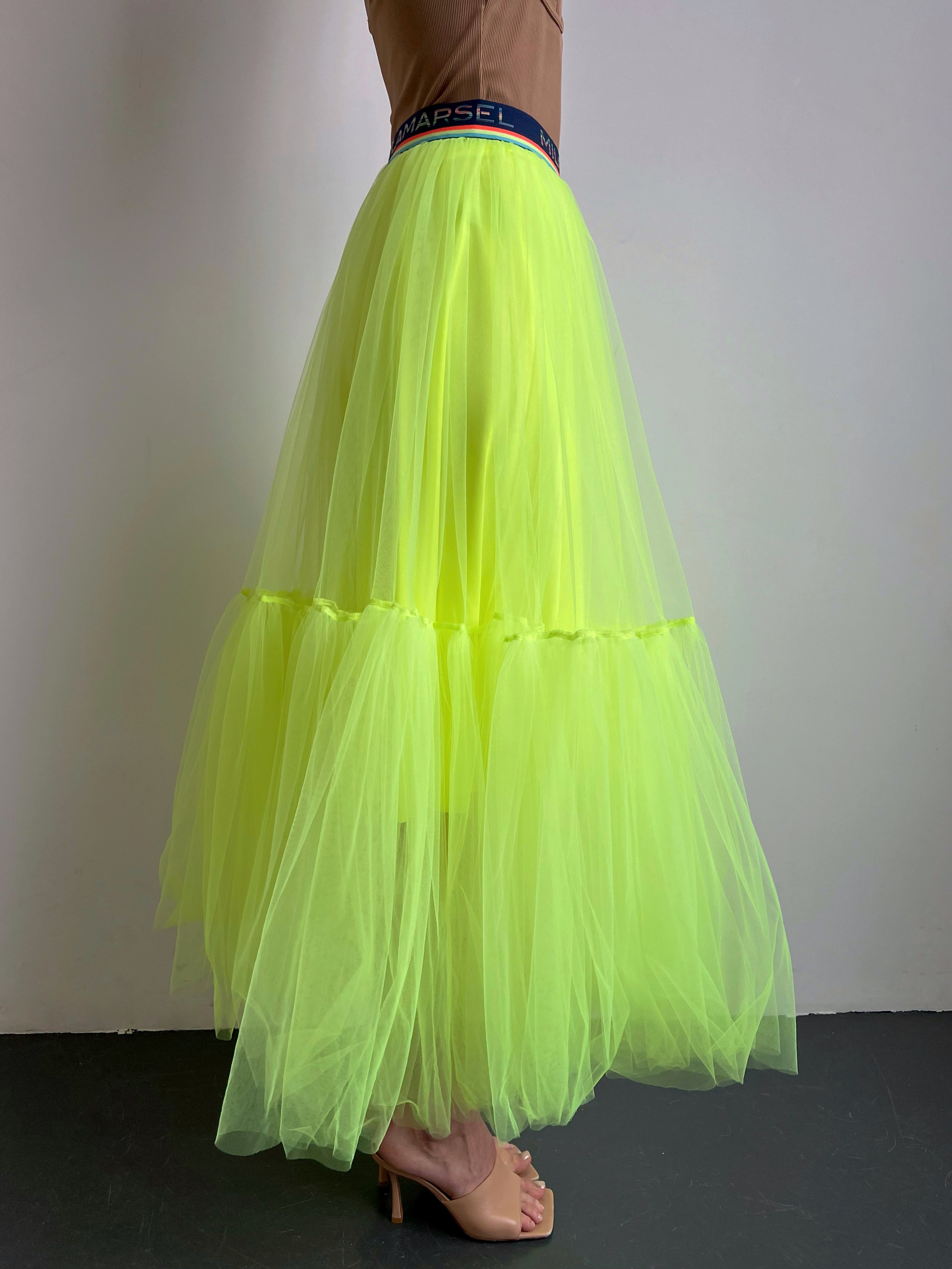 Пышная, полупрозрачная, легкая юбка на резинке с чехлом под тон станет прекрасным приобретением в жаркий сезон. Ярко-зеленый цвет цвет не оставит Вас незамеченной, а также приобретая данную модель в Вашем гардеробе появляется универсальная юбка-платье.
