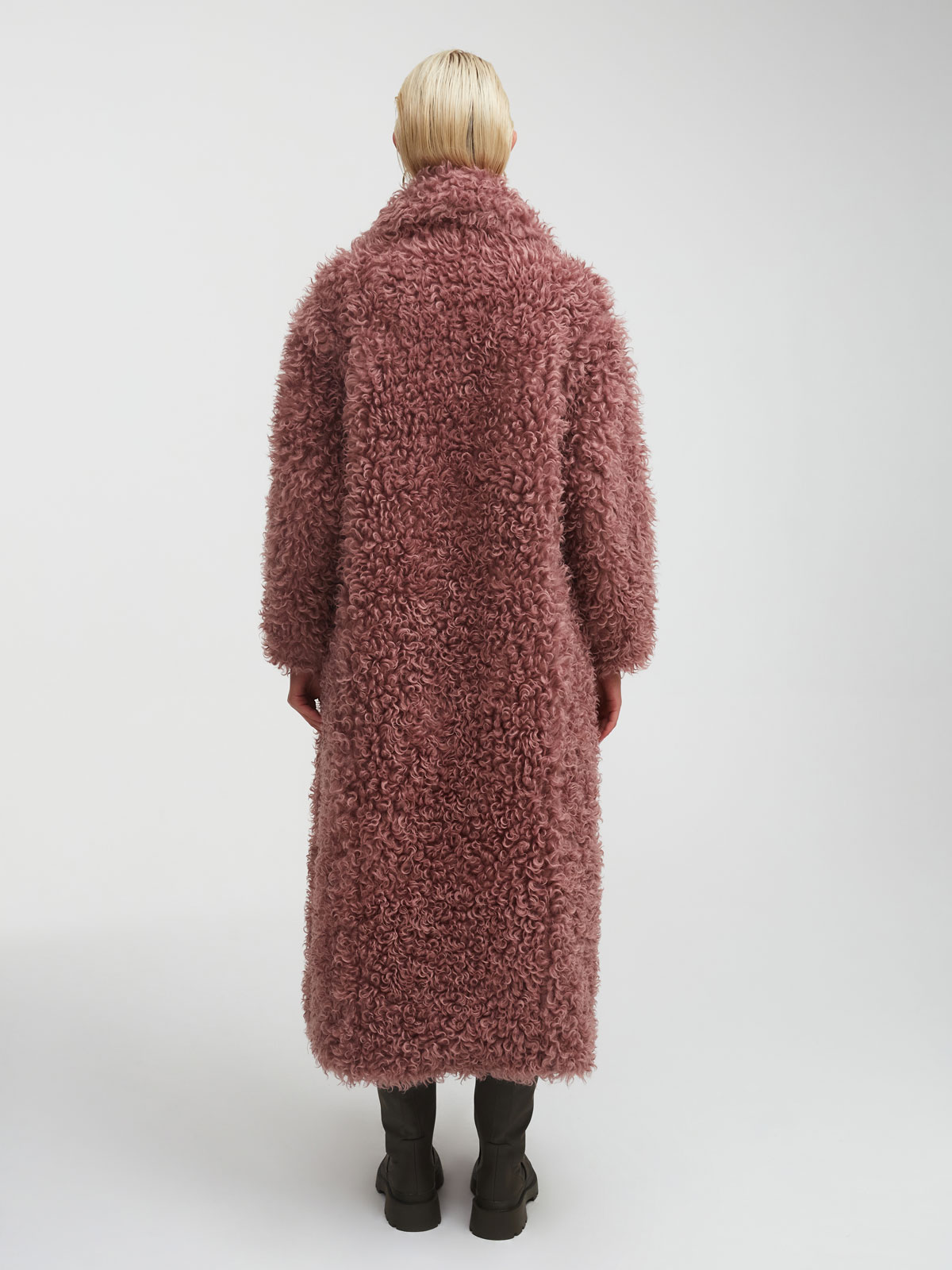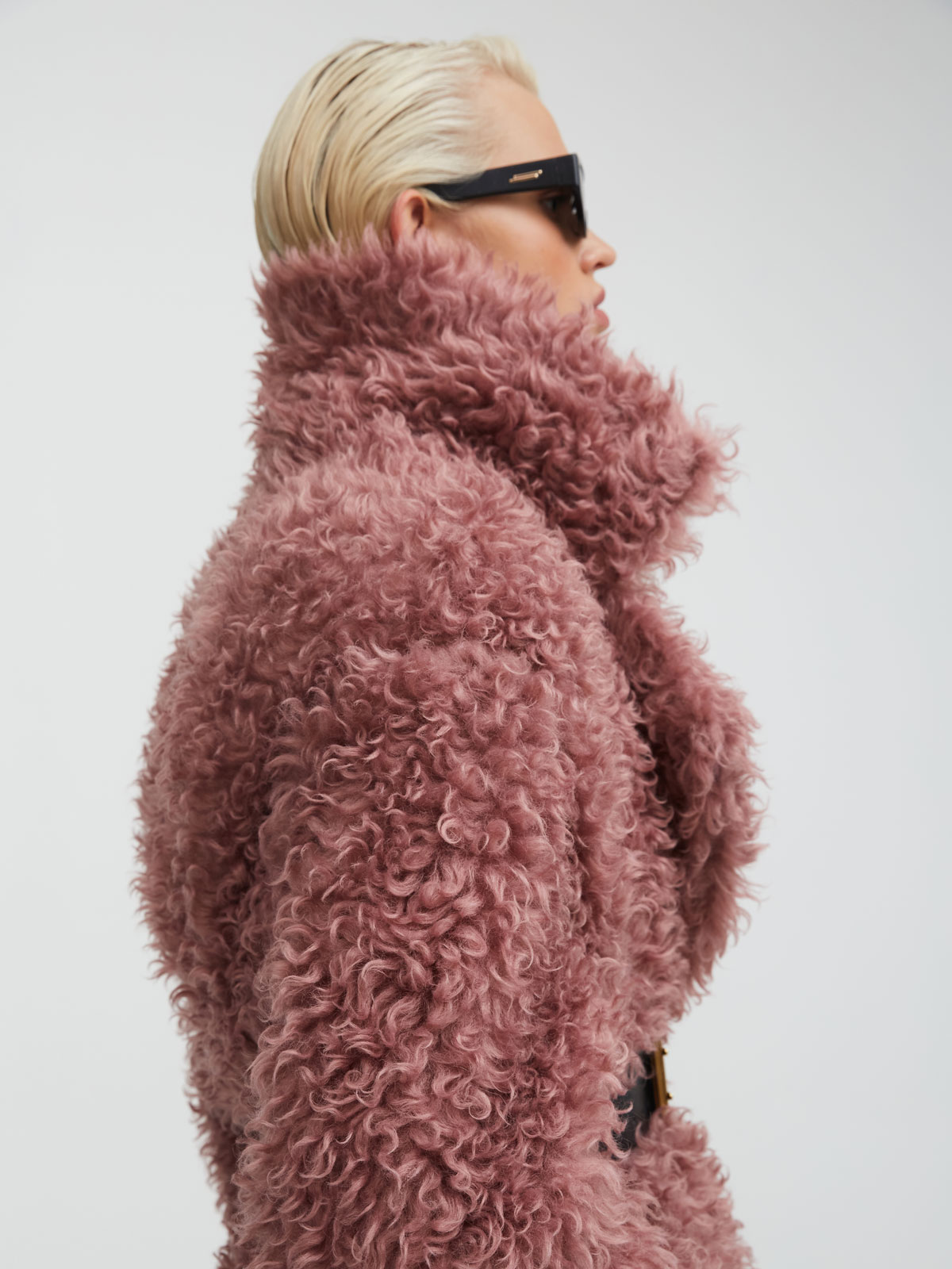 Розовая шуба MILAMARSEL из 100% шерсти входит в культовую коллекцию премиальных экошуб бренда. Шерсть для них аккуратно состригается, не нанося вреда животному, поэтому они абсолютно экологичны и натуральны. Благодаря мягкому и очень приятному на ощупь длинному ворсу и теплому оттенку розового, образ получается невероятно уютным, а внешность становится еще ярче и интереснее.