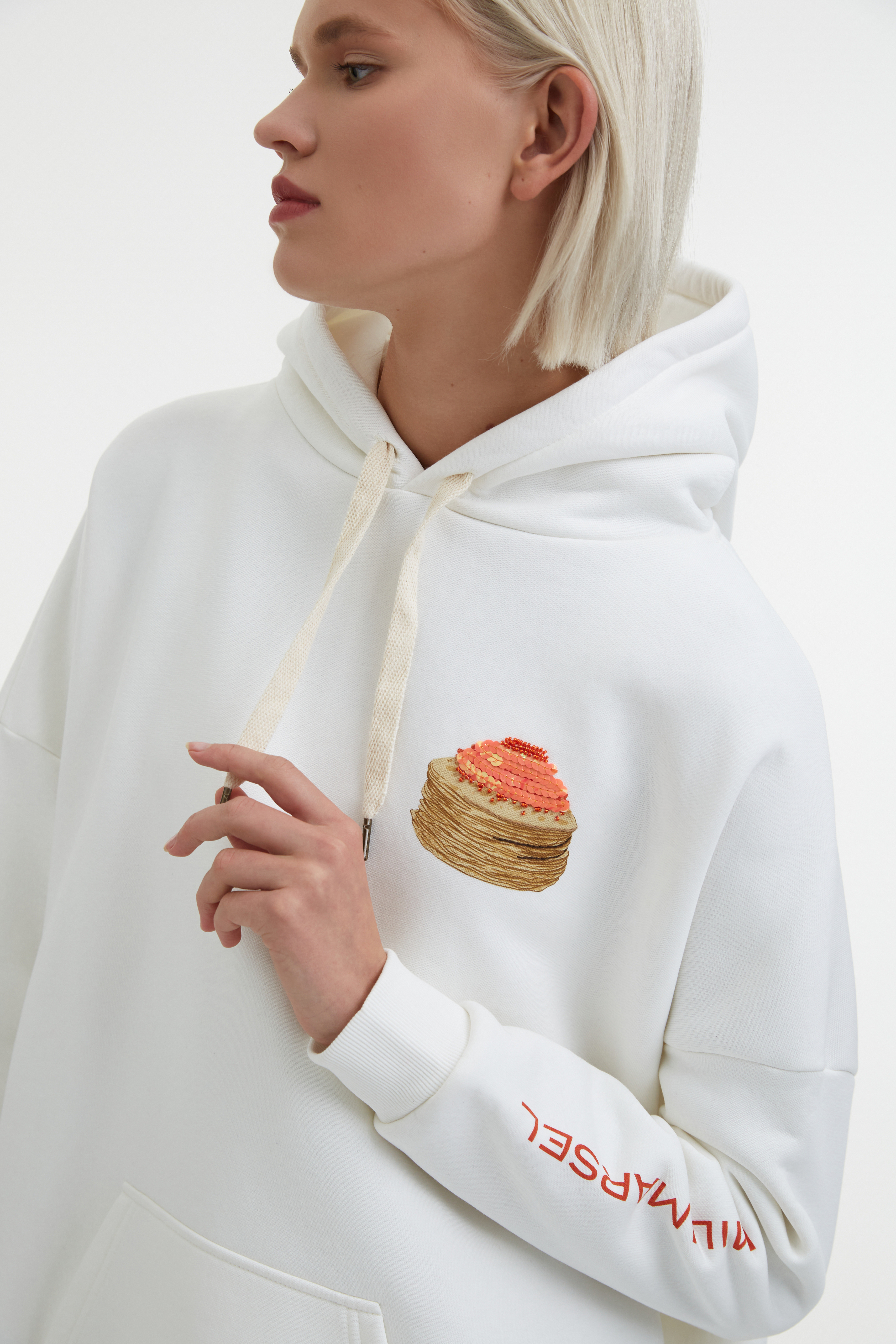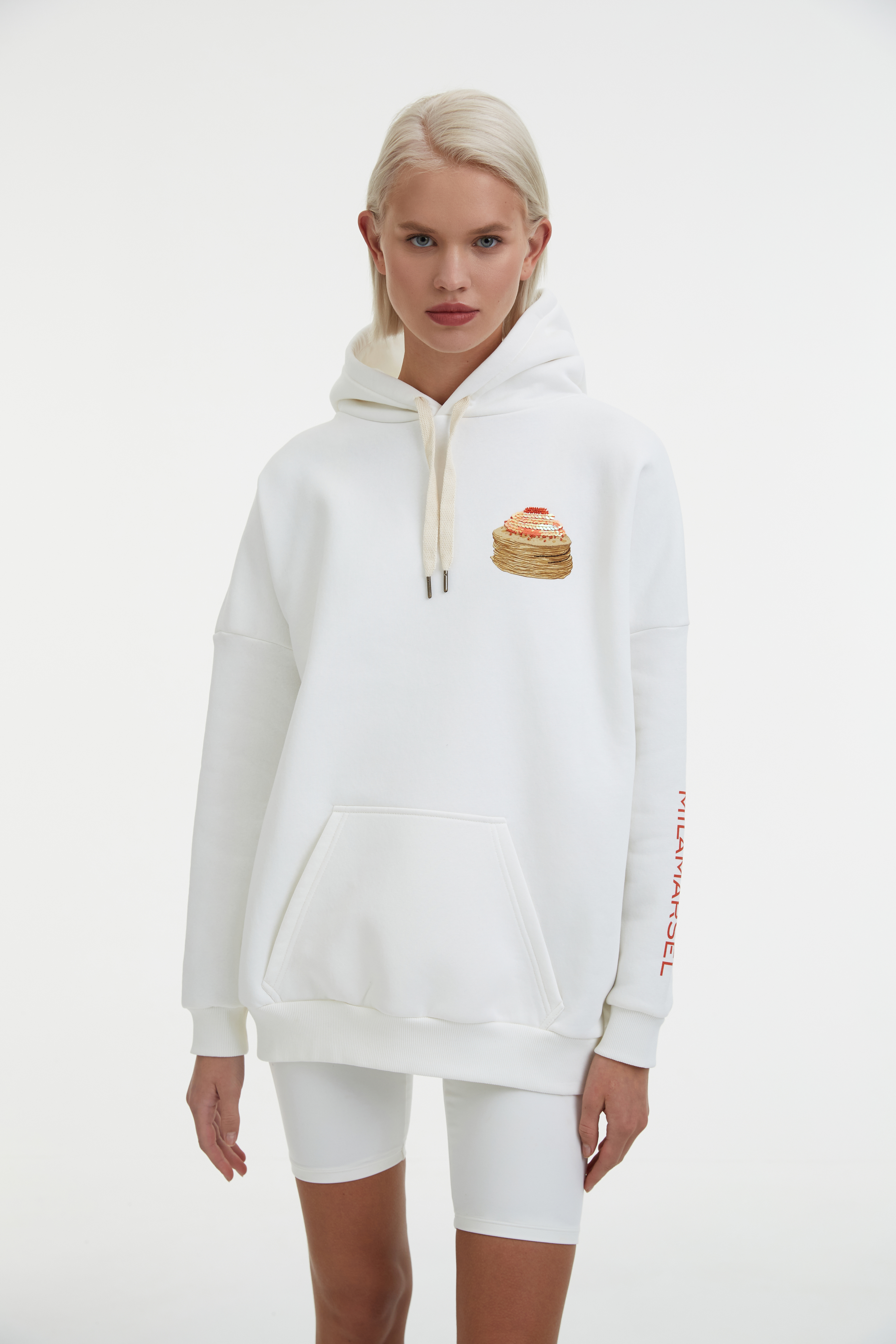 Лимитированное худи MILAMARSEL «Масленица 2021» – эксклюзивное изделие бренда, выпущенное в честь праздника русской Масленицы. Бренд MILAMARSEL организовал выездной тур в Суздаль для постоянных клиентов и друзей бренда, чтобы отпраздновать Масленицу, а также поближе познакомить клиентов с главными ценностями, образами и эстетикой коллекций MILAMARSEL. В рамках этого тура было создано брендированное худи, которое теперь доступно к продаже. Худи молочного оттенка выполнено в силуэте оверсайз и декорировано сложным принтом спереди и сзади с ручной вышивкой и объемными элементами, а также дополнено логотипом бренда на рукаве. Худи «Не все коту Масленица» отличается стильным и универсальным дизайном, который одинаково подходит как женщинам, так и мужчинам. В коллекции также представлен детский свитшот с аналогичным принтом.