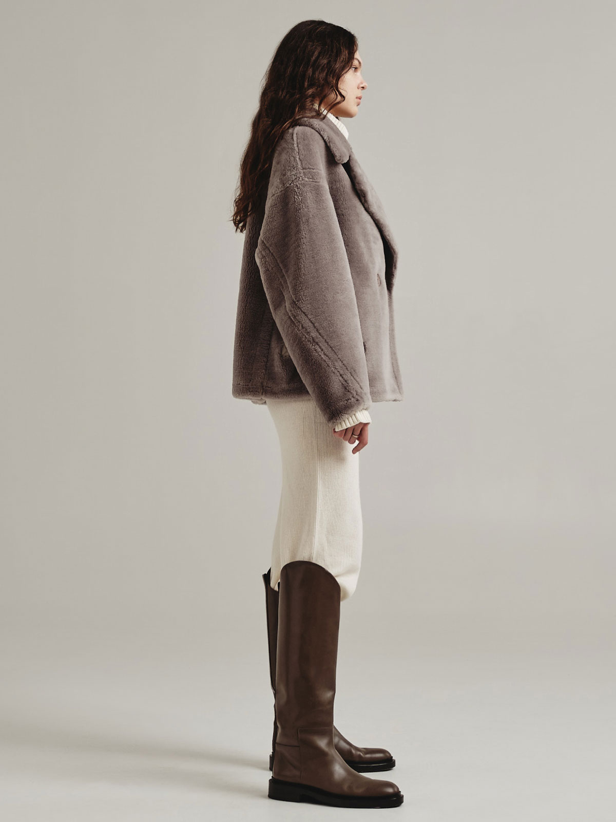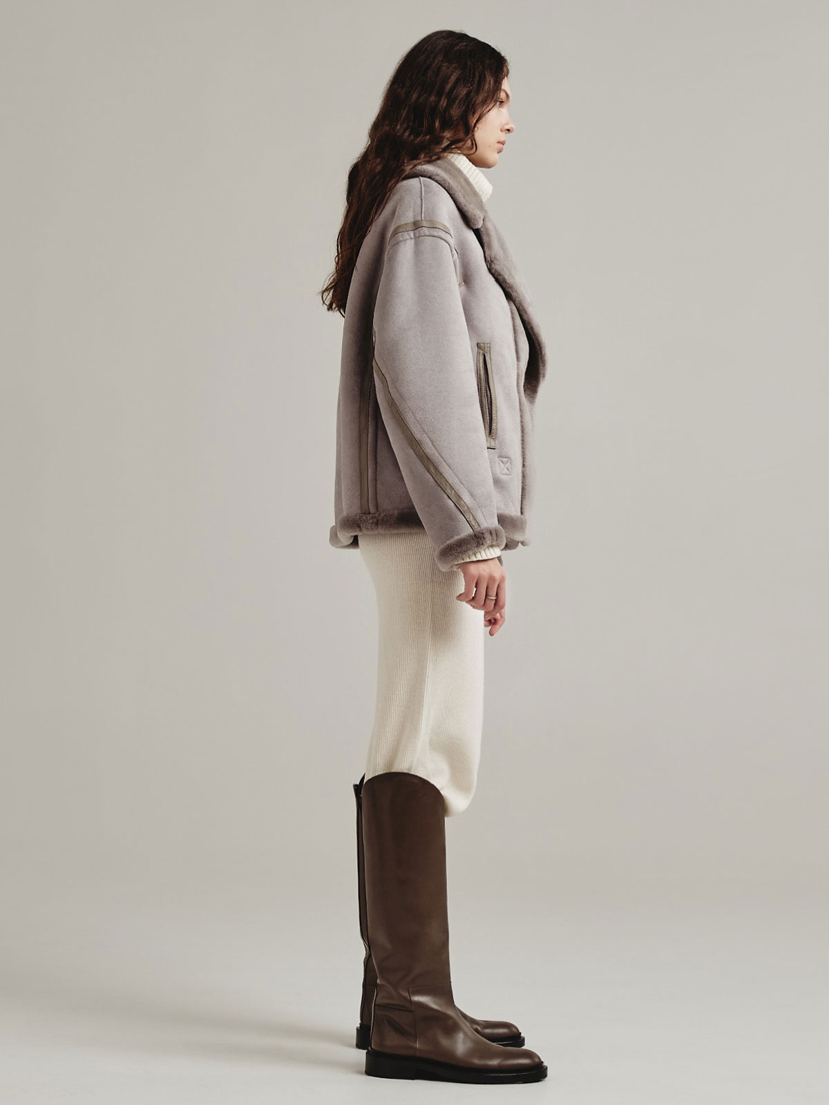 Модель «Наташа Ростова» премиальной коллекции Romanoff представляет собой фасон бомбера, выполненный в виде шубы из экомеха. Изделие является двусторонним и отличается своей функциональностью – с одной стороны оно выглядит как бомбер-дубленка, а с другой как укороченная шуба.