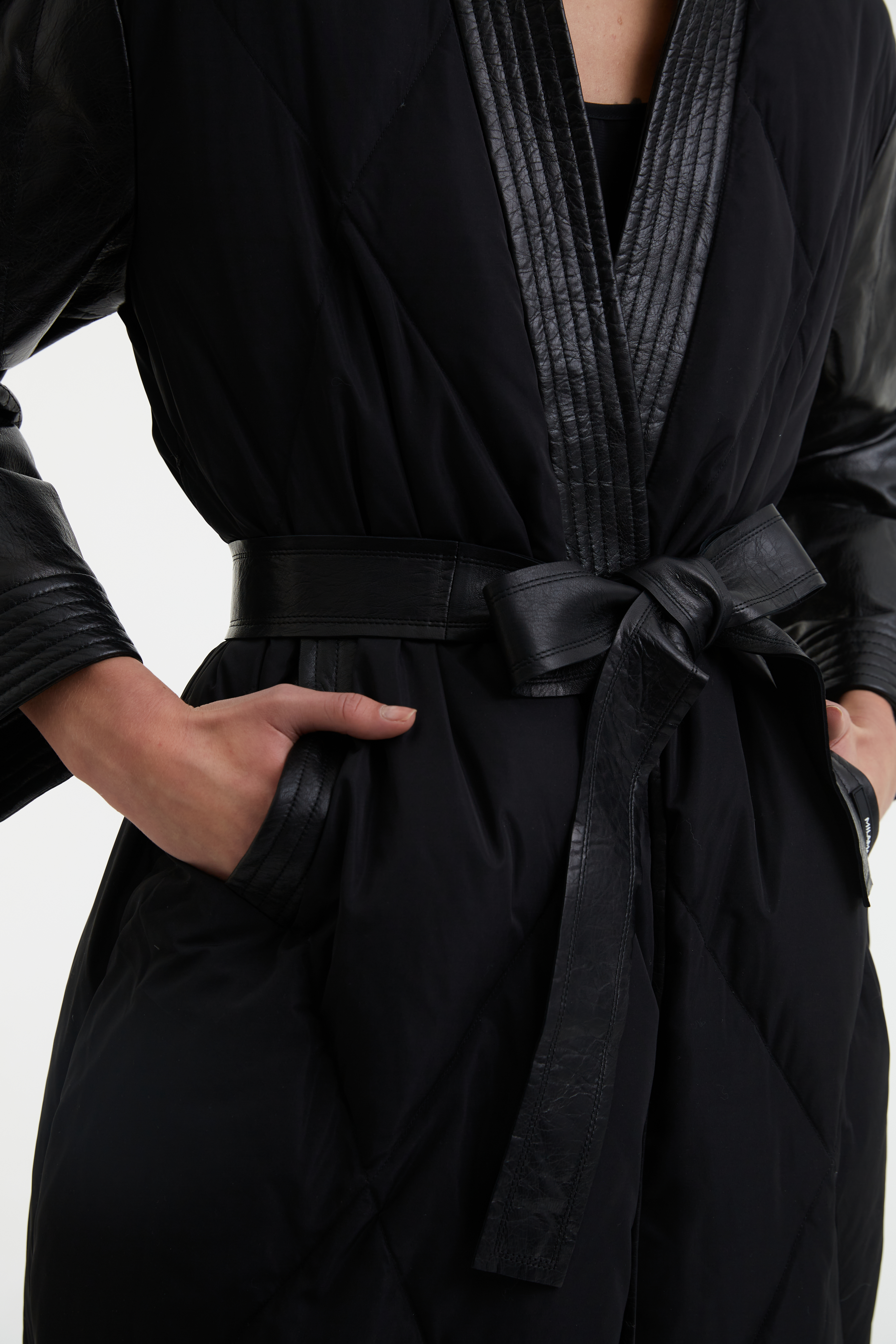 Черный плащ с поясом.