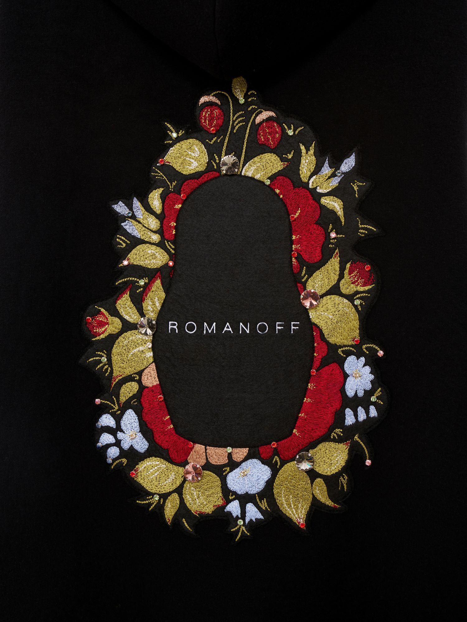Особое внимание привлекает изысканная ручная вышивка русской матрешки, которая является настоящим произведением искусства. Каждая деталь матрешки проработана с особой тщательностью, отражая многослойность и символизм русского народного творчества. Яркие цвета и сложные узоры вышивки добавляют уникальность и индивидуальность, превращая это худи в выразительный элемент стиля.