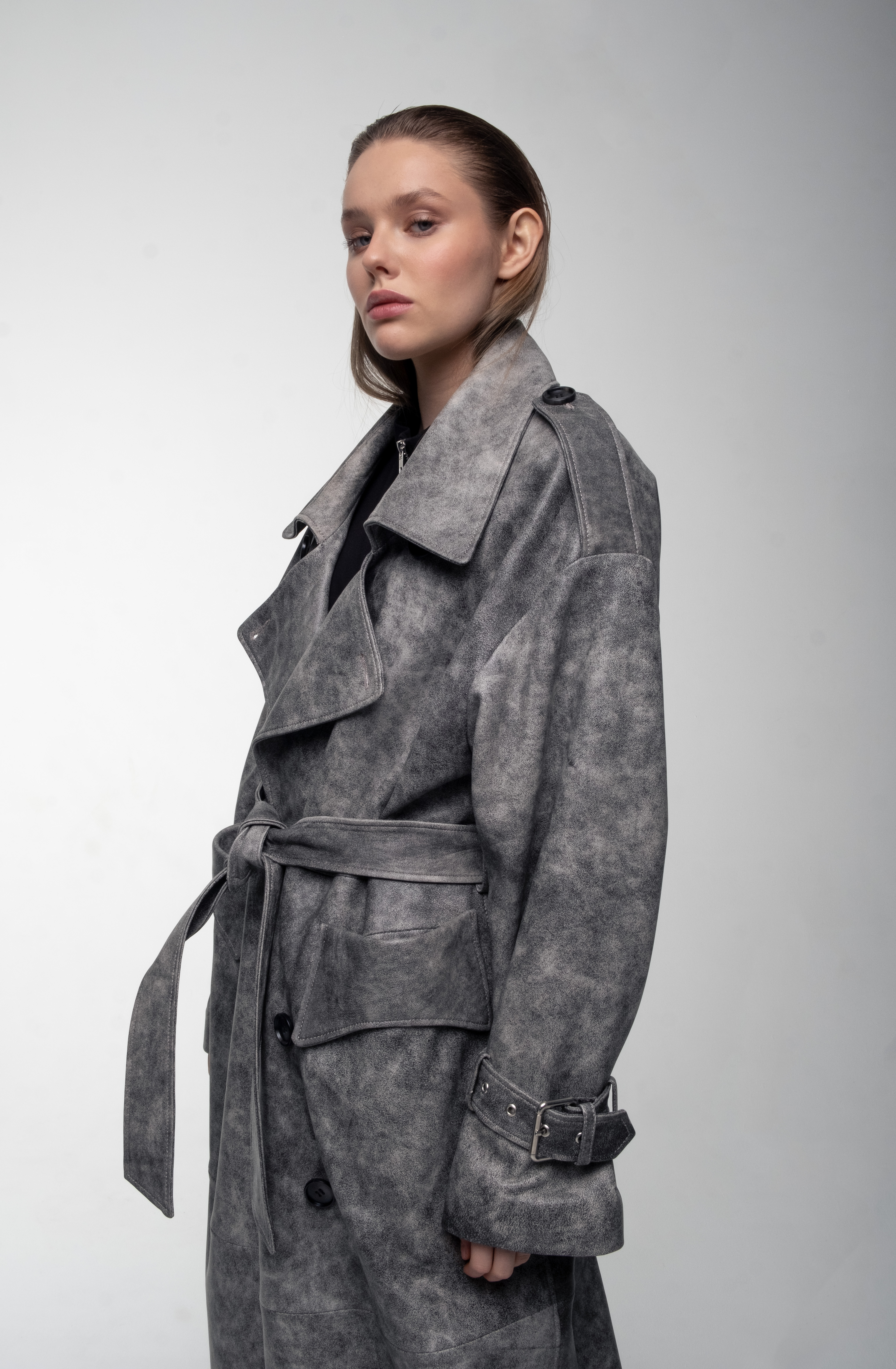 Трендовый кожаный тренч из натуральной кожи.