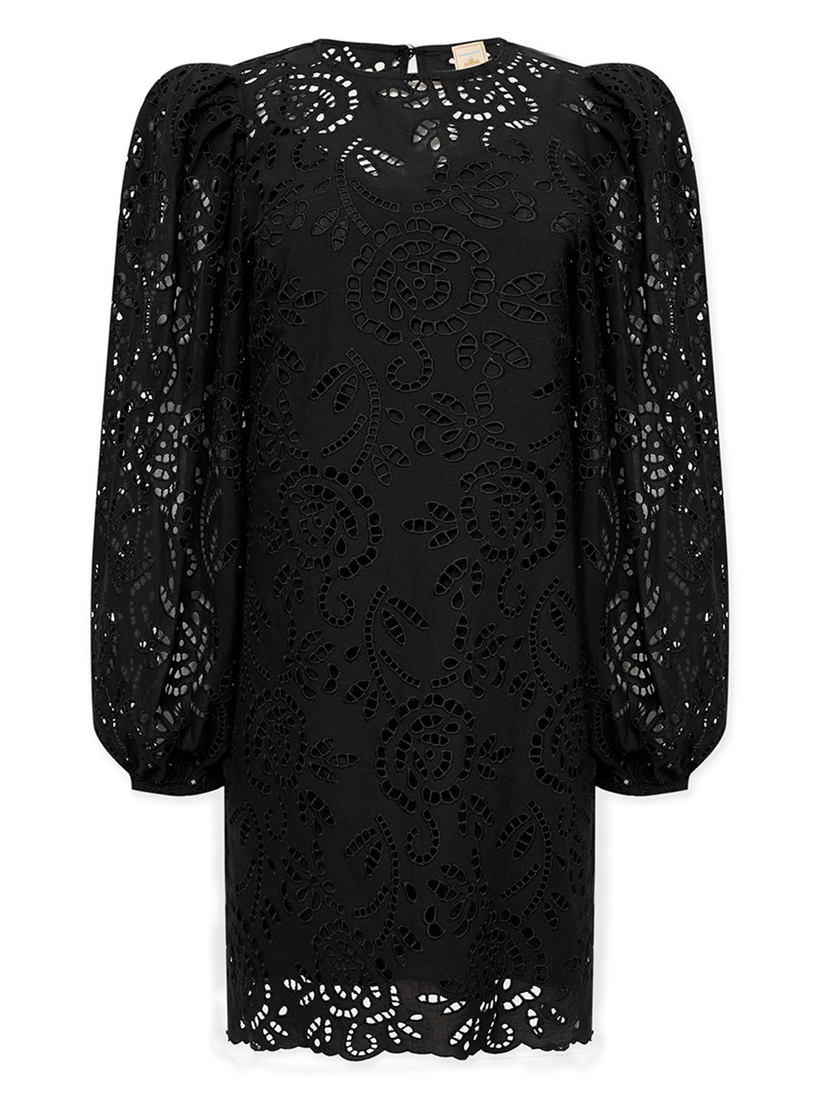 Черное платье с акцентными рукавами.