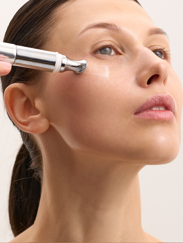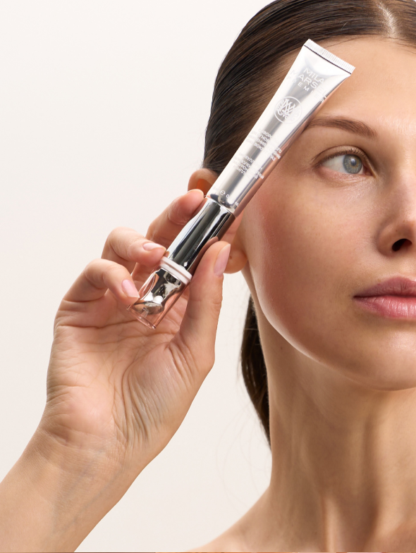 В результате кожа вокруг глаз выглядит заметно более свежей и ухоженной: утренняя отёчность становится менее выраженной, тёмные круги постепенно светлеют, а тон выравнивается. Область вокруг глаз становится более гладкой, упругой и увлажнённой, появляется естественное деликатное сияние, а взгляд - более открытым, ясным и отдохнувшим.