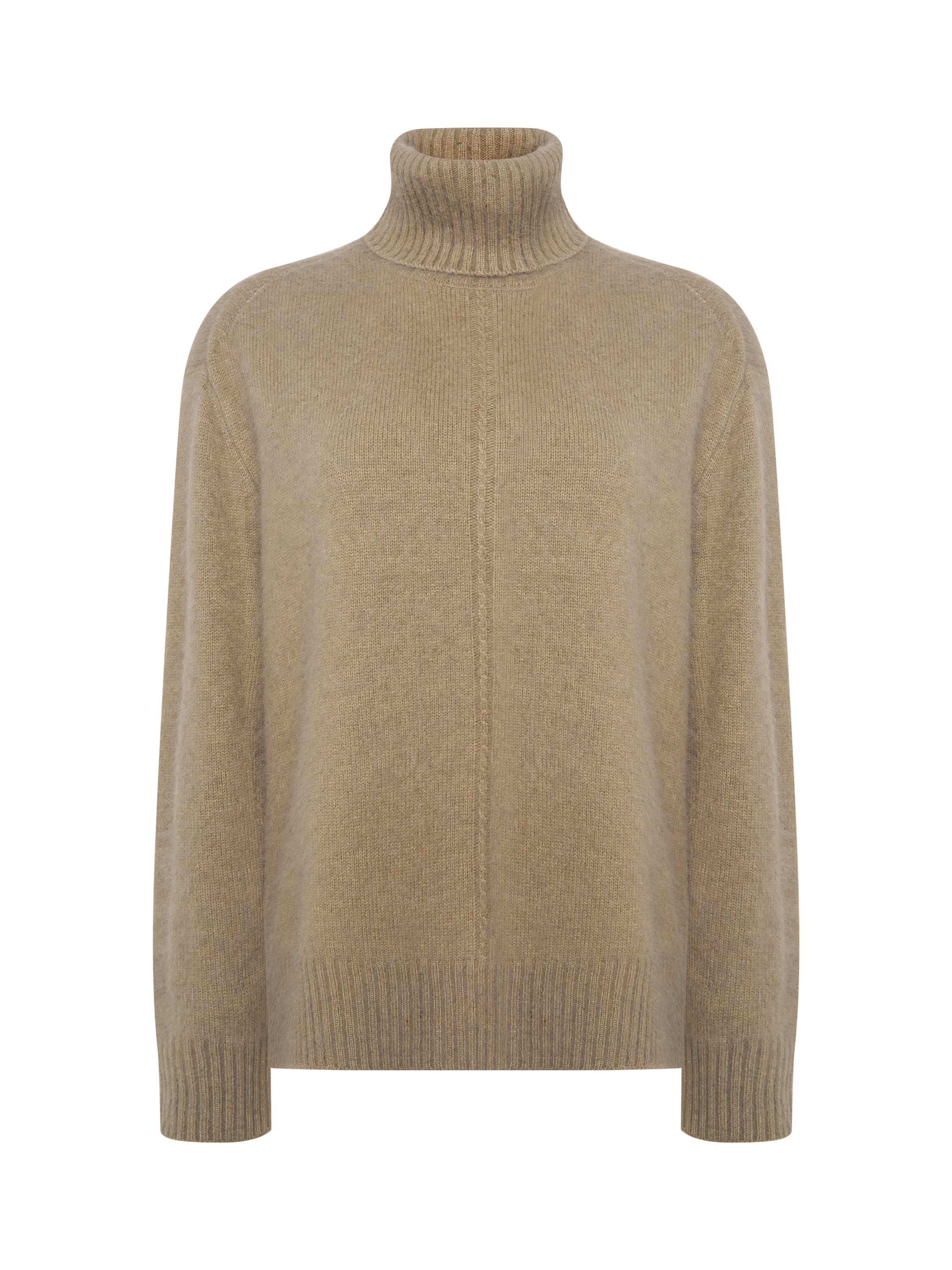 Свитер "Зина" — это сочетание уюта и стиля. Выполненный в мягком бежевом цвете, он отличается высоким горлом, создающим дополнительное тепло и комфорт в холодные дни. Прямой крой и аккуратная вязка делают его универсальным выбором для любого гардероба. Идеально подходит для создания расслабленных и уютных образов, сочетаясь с джинсами или классическими брюками.