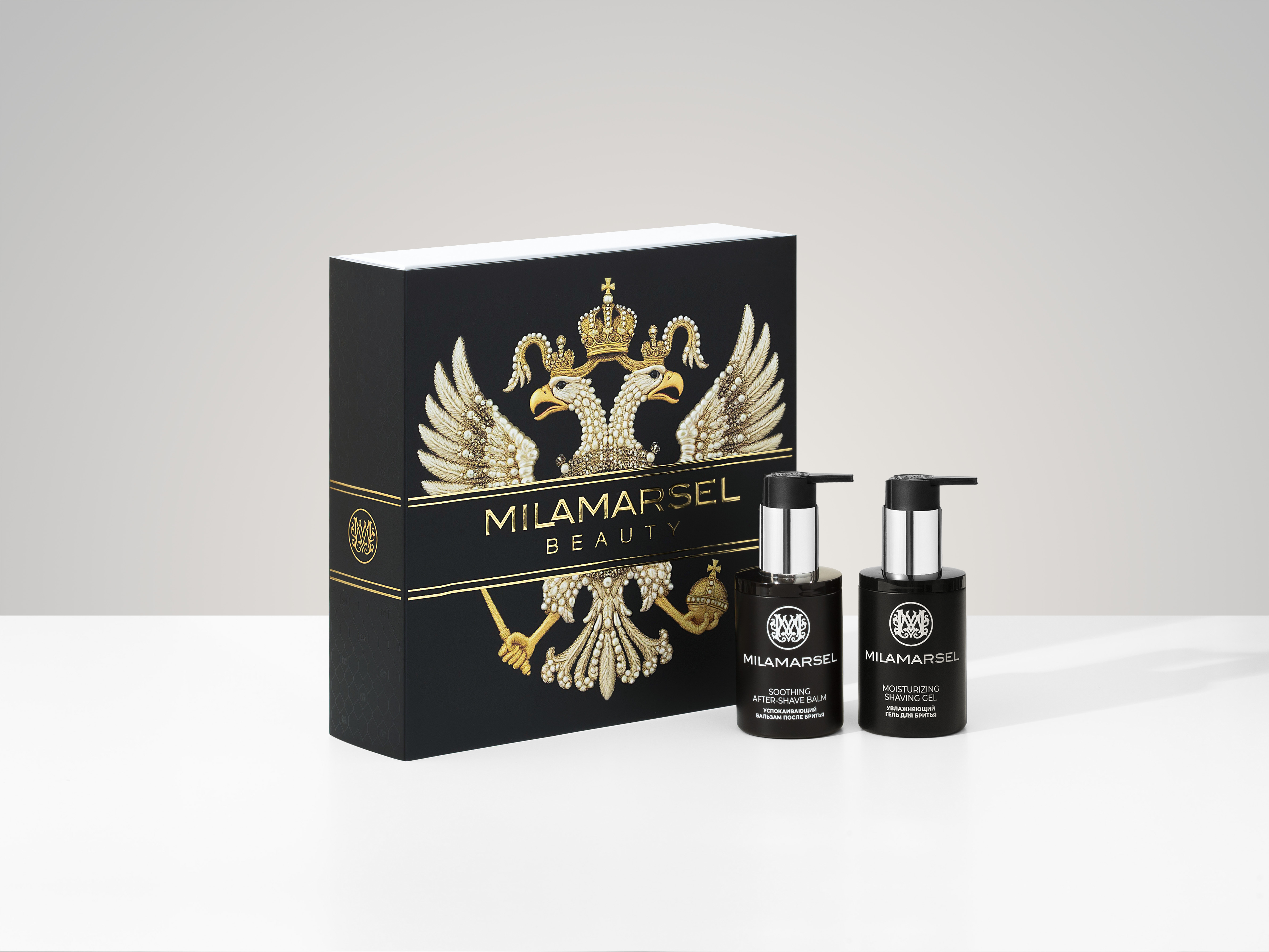 Бестселлер MILAMARSEL - мужской подарочный набор «Царский Орел» - теперь в новом подарочном исполнении. Коробку украшает благородная чёрная дизайнерская работа с крупным двуглавым орлом - символом силы, уверенности и характера. Такой дизайн выглядит дорого, мужественно и производит впечатление уже при первом взгляде.