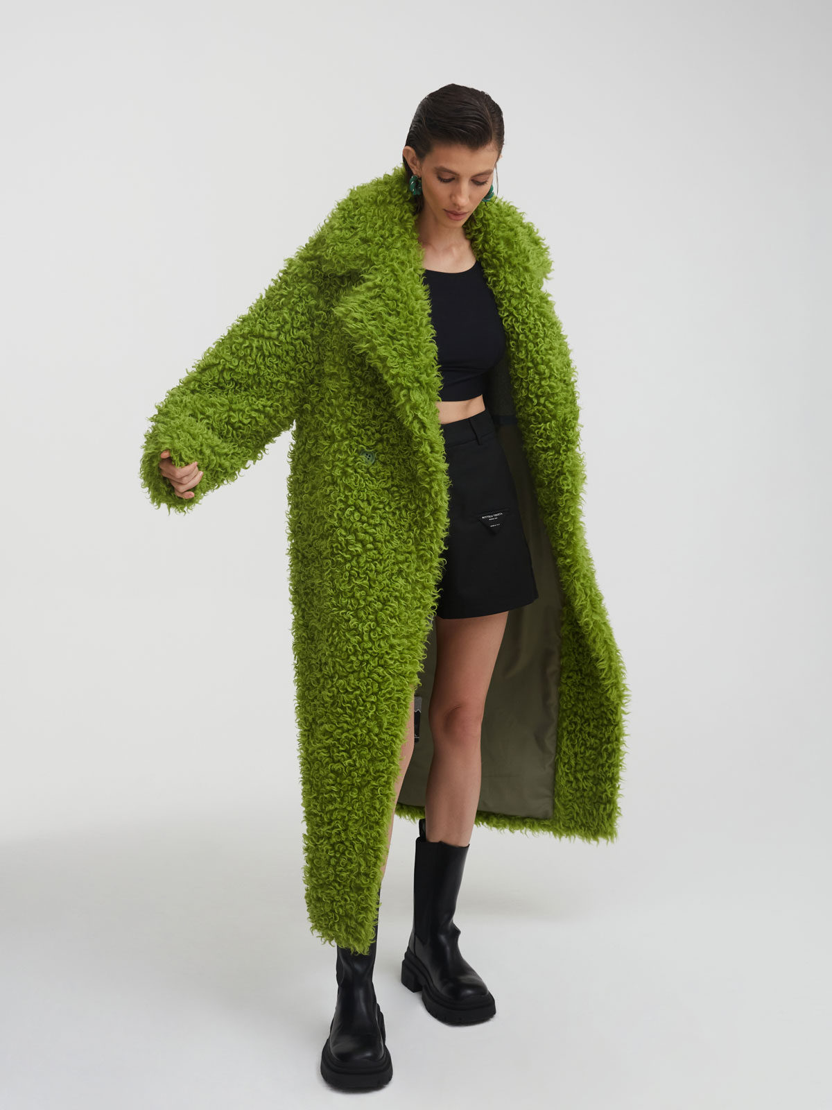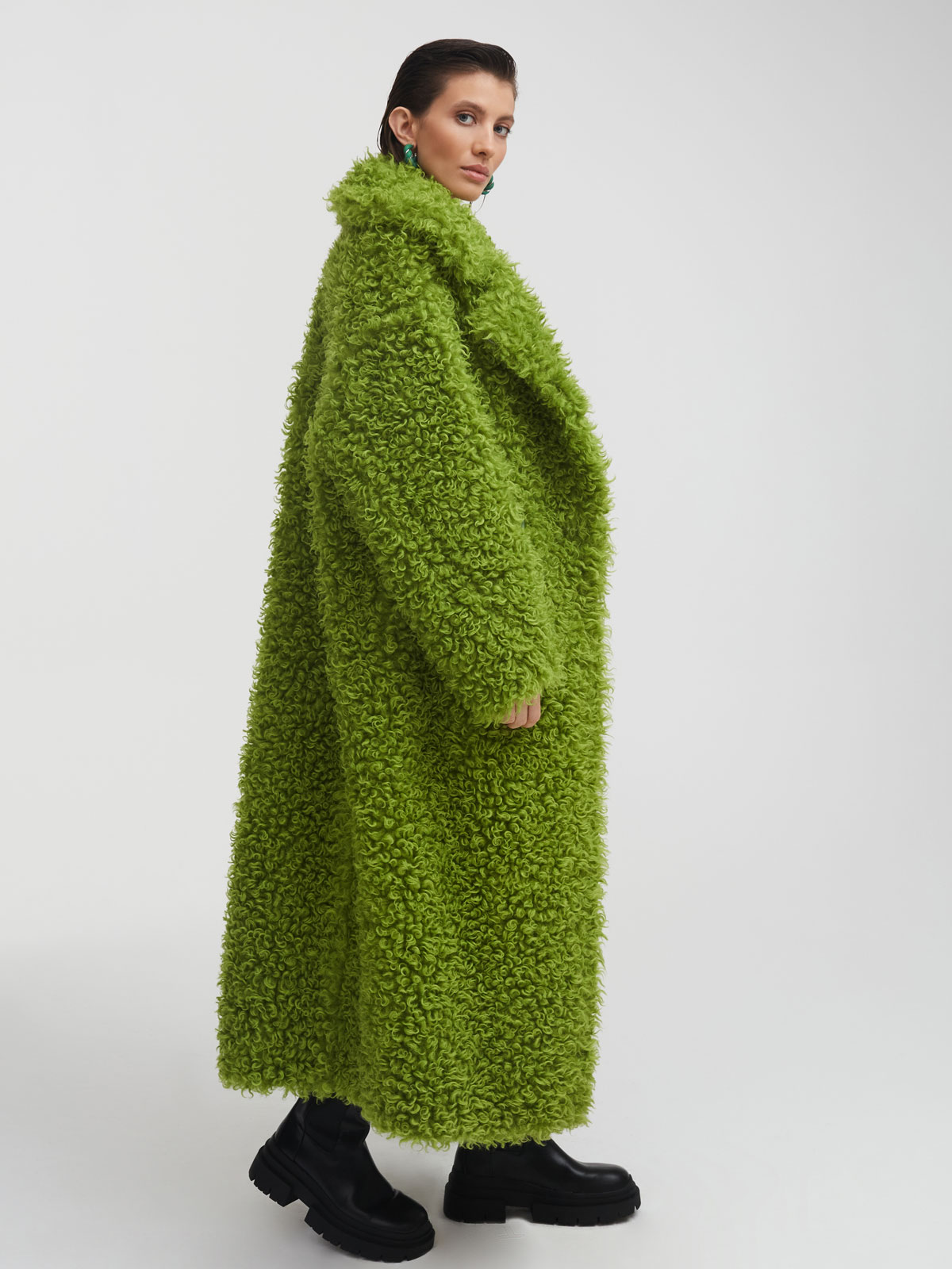 Зеленая шуба MILAMARSEL из 100% шерсти – самая эффектная модель в коллекции премиальных экошуб. За счет мягкого и очень приятного на ощупь длинного ворса и трендового зеленого оттенка она становится главным акцентом образа и идеально подходит для ярких и смелых аутфитов.