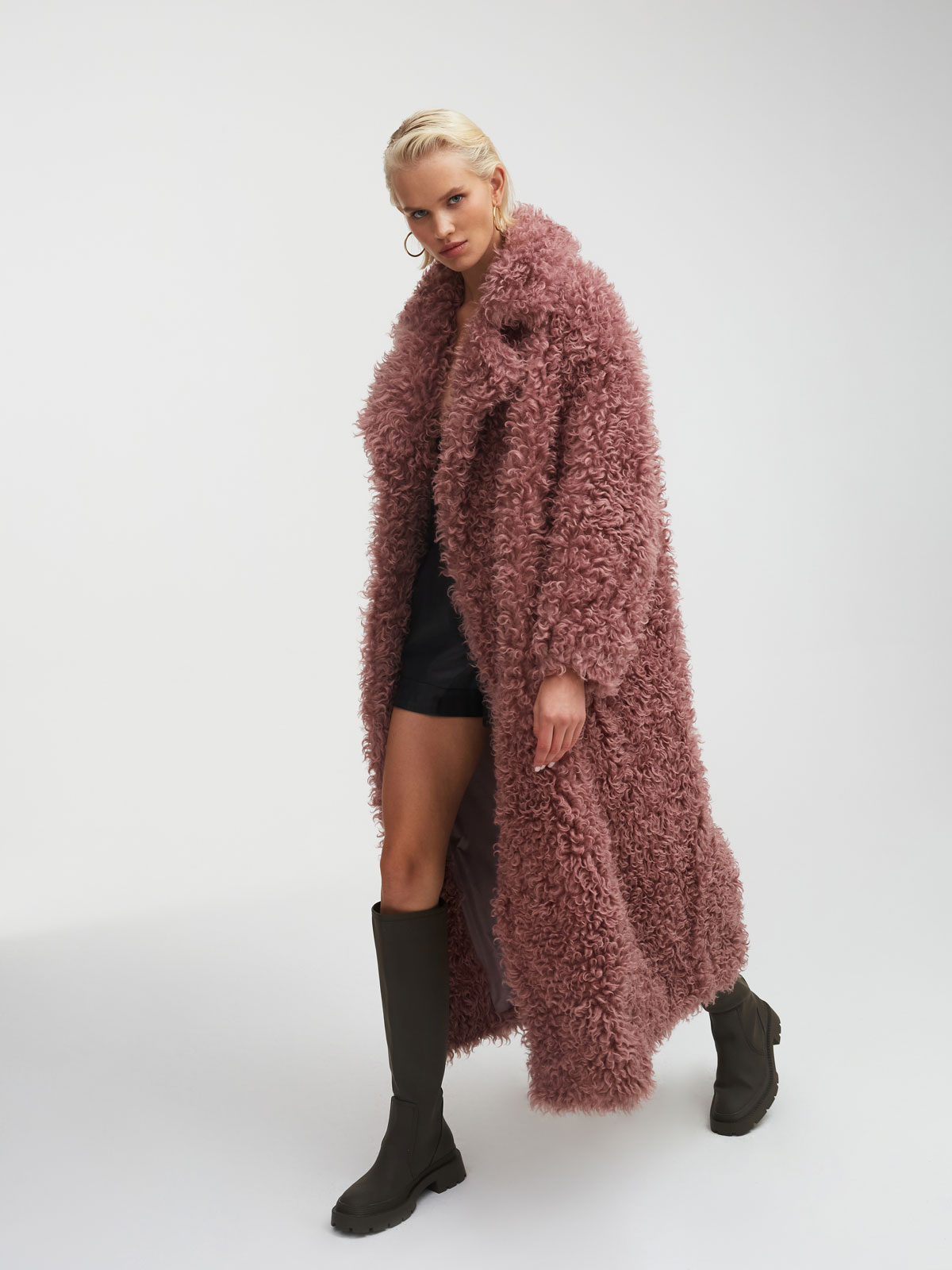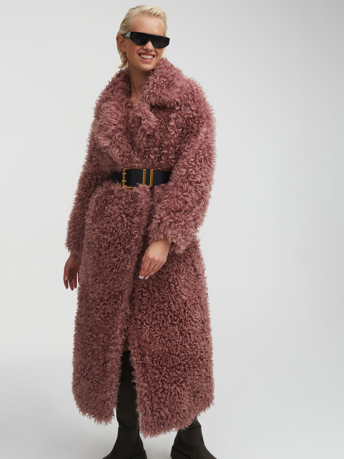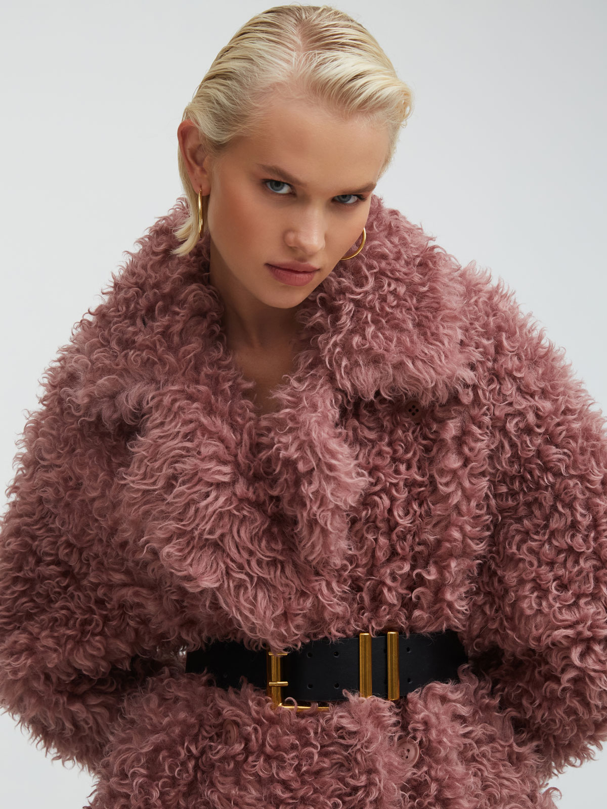 Розовая шуба MILAMARSEL из 100% шерсти входит в культовую коллекцию премиальных экошуб бренда. Шерсть для них аккуратно состригается, не нанося вреда животному, поэтому они абсолютно экологичны и натуральны. Благодаря мягкому и очень приятному на ощупь длинному ворсу и теплому оттенку розового, образ получается невероятно уютным, а внешность становится еще ярче и интереснее.