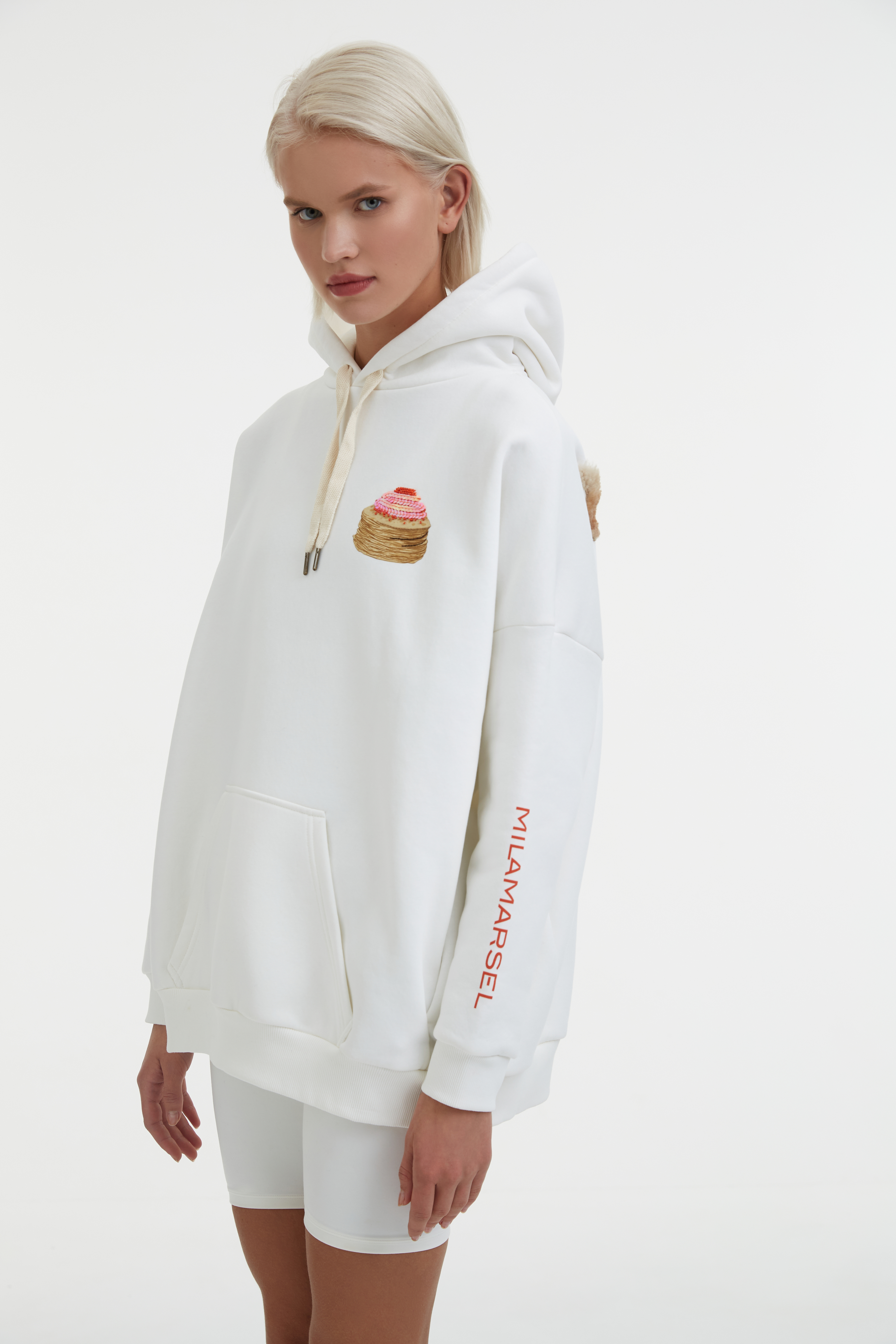 Лимитированное худи MILAMARSEL «Масленица 2021» – эксклюзивное изделие бренда, выпущенное в честь праздника русской Масленицы. Бренд MILAMARSEL организовал выездной тур в Суздаль для постоянных клиентов и друзей бренда, чтобы отпраздновать Масленицу, а также поближе познакомить клиентов с главными ценностями, образами и эстетикой коллекций MILAMARSEL. В рамках этого тура было создано брендированное худи, которое теперь доступно к продаже. Худи молочного оттенка выполнено в силуэте оверсайз и декорировано сложным принтом спереди и сзади с ручной вышивкой и объемными элементами, а также дополнено логотипом бренда на рукаве. Худи «Не все коту Масленица» отличается стильным и универсальным дизайном, который одинаково подходит как женщинам, так и мужчинам. В коллекции также представлен детский свитшот с аналогичным принтом.