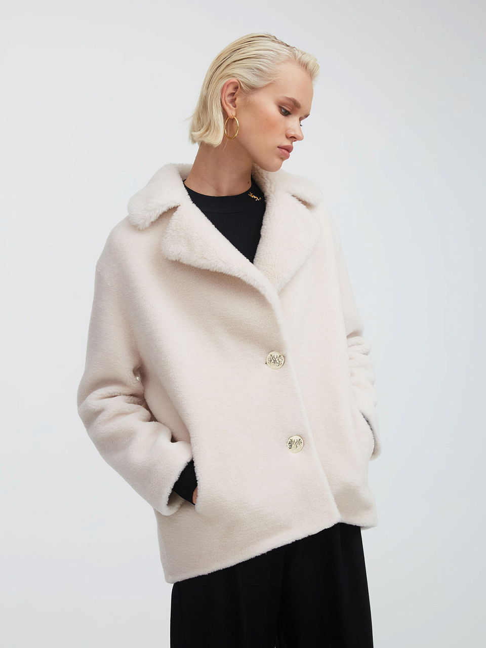 Укороченная шуба из 100% шерсти Снегурочка, вышитая нитями из белого золота – одно из самых роскошных изделий в коллекции. Это исключительное сочетание современных трендов, высоких технологий, эксклюзивного дизайна в русском стиле и исконно русских промыслов, которые воплотились в актуальной и свежей интерпретации. Экомех на этой модели невероятно мягкий и пластичный, поэтому идеально садится по фигуре.