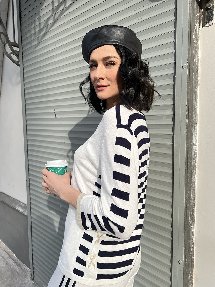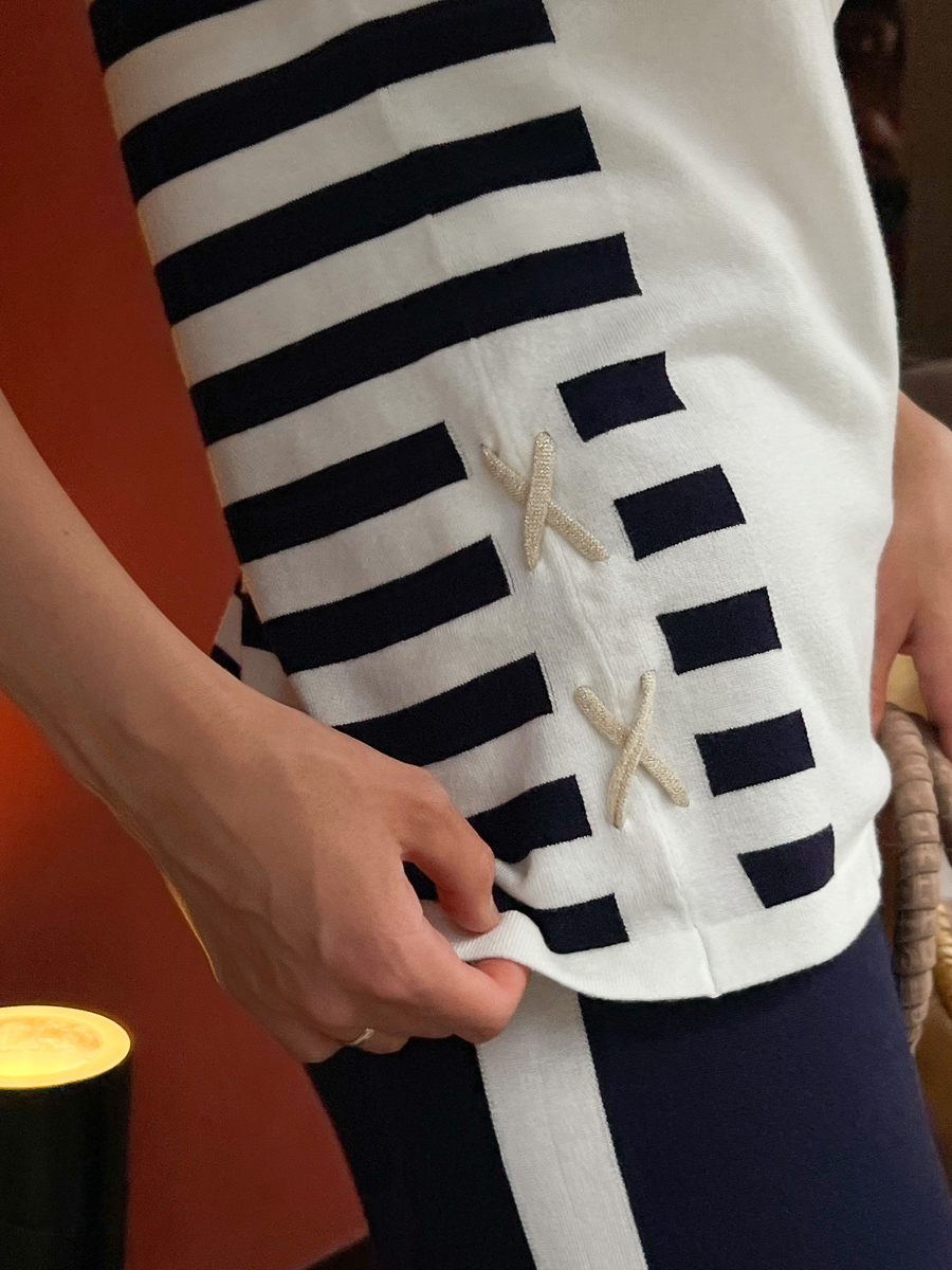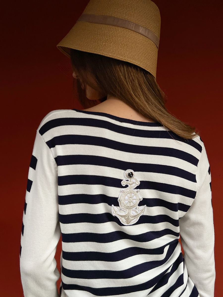 Пуловер из нежной вискозы с шелком и якорем на спине, вышитым вручную.