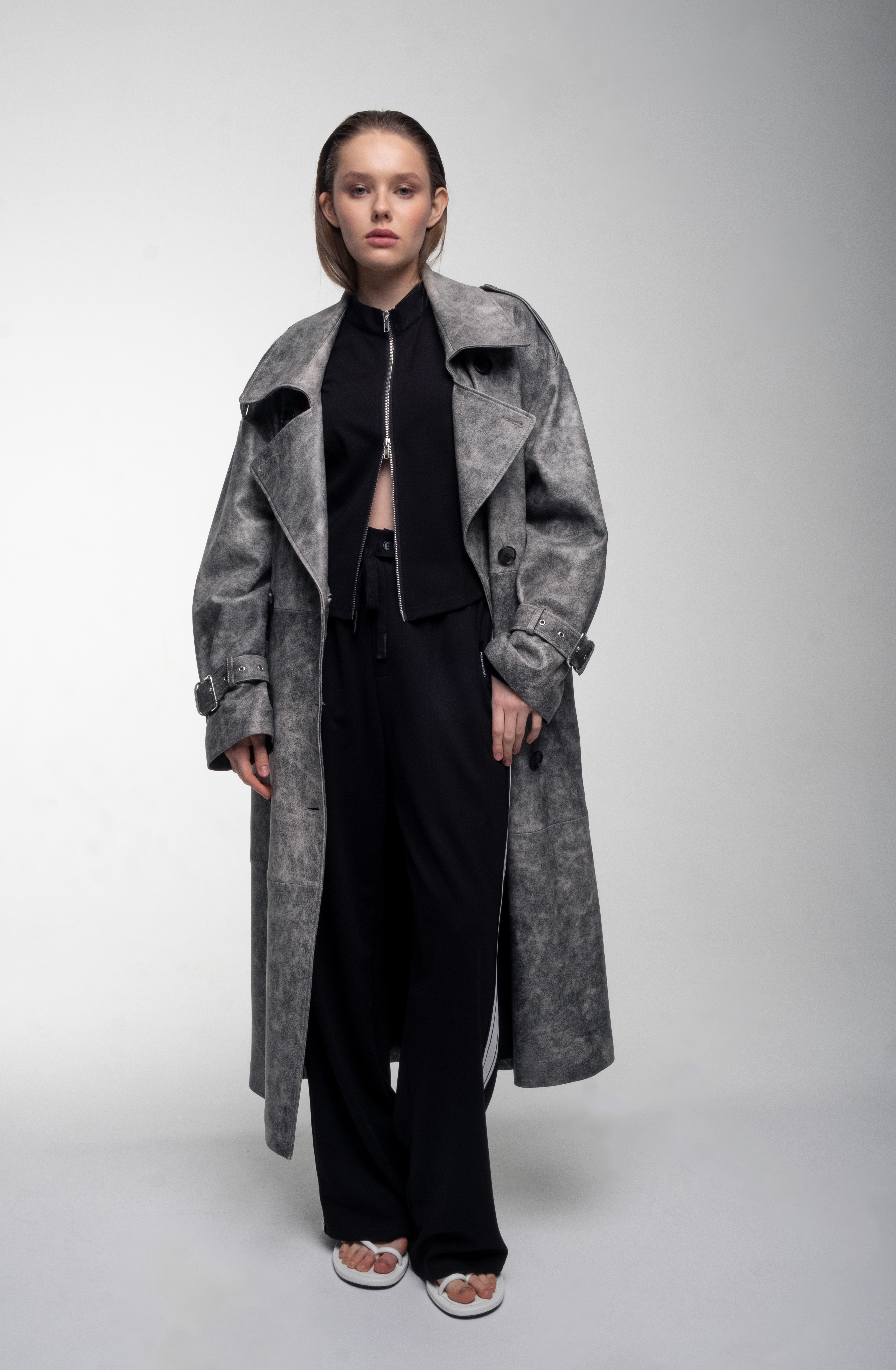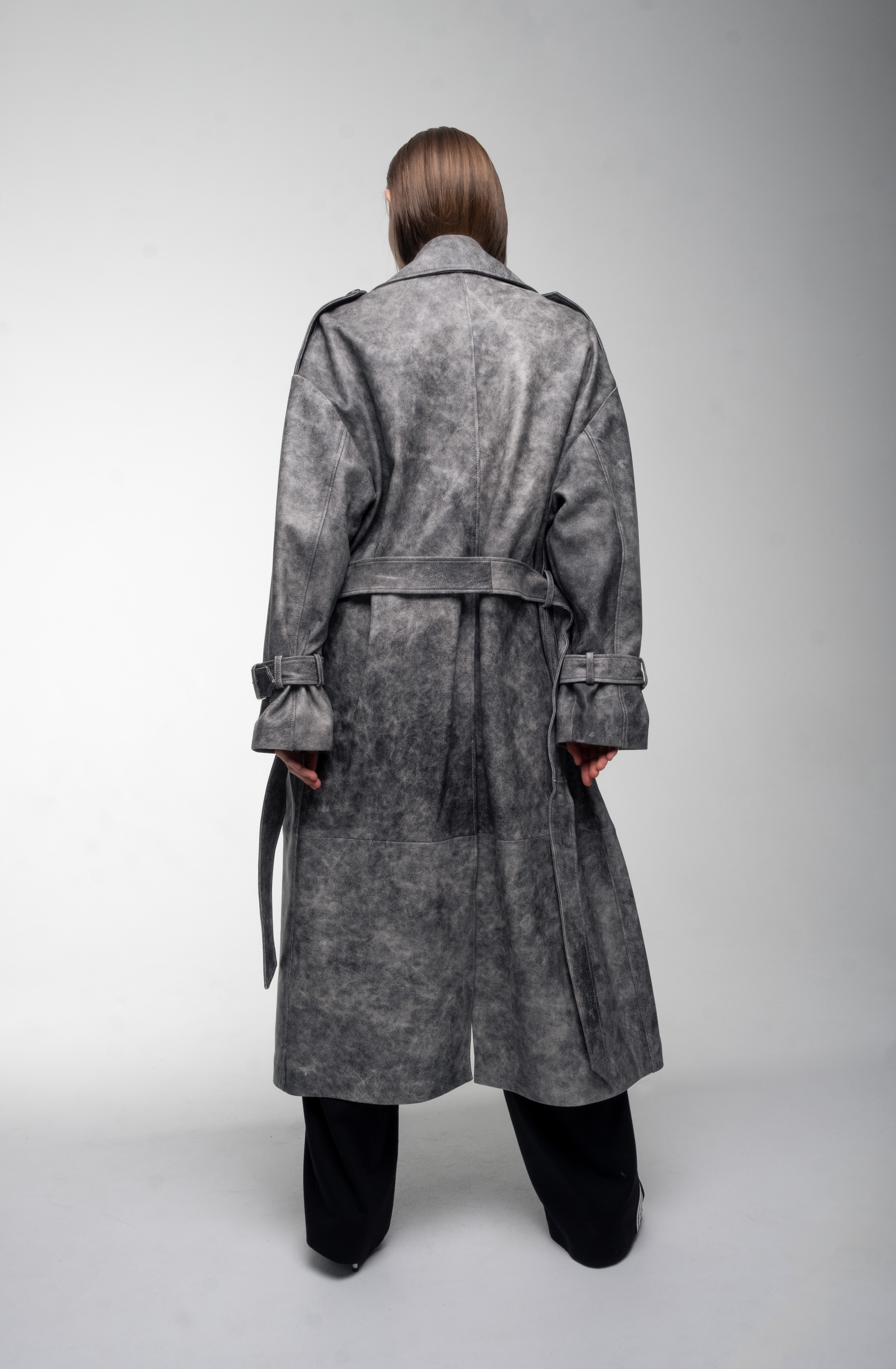 Трендовый кожаный тренч из натуральной кожи.