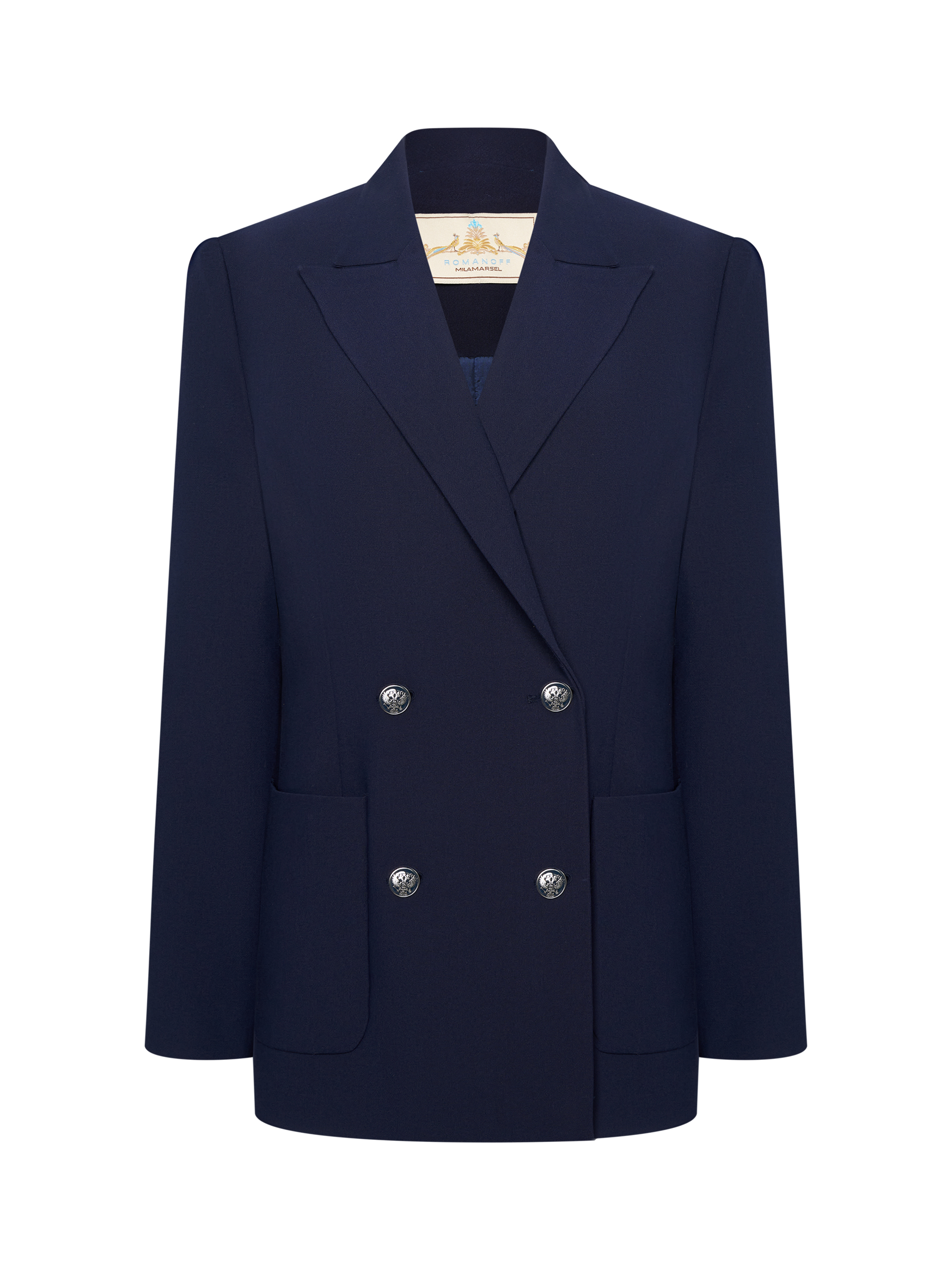 - Жакет "Море" — это воплощение морской элегантности и современного стиля. Глубокий синий цвет и двубортный крой создают утонченный и уверенный образ. Металлические пуговицы добавляют изысканности, а классические лацканы подчеркивают силуэт. Этот жакет станет идеальным дополнением как к деловому, так и к повседневному гардеробу, добавляя вашему образу нотку морского шика.