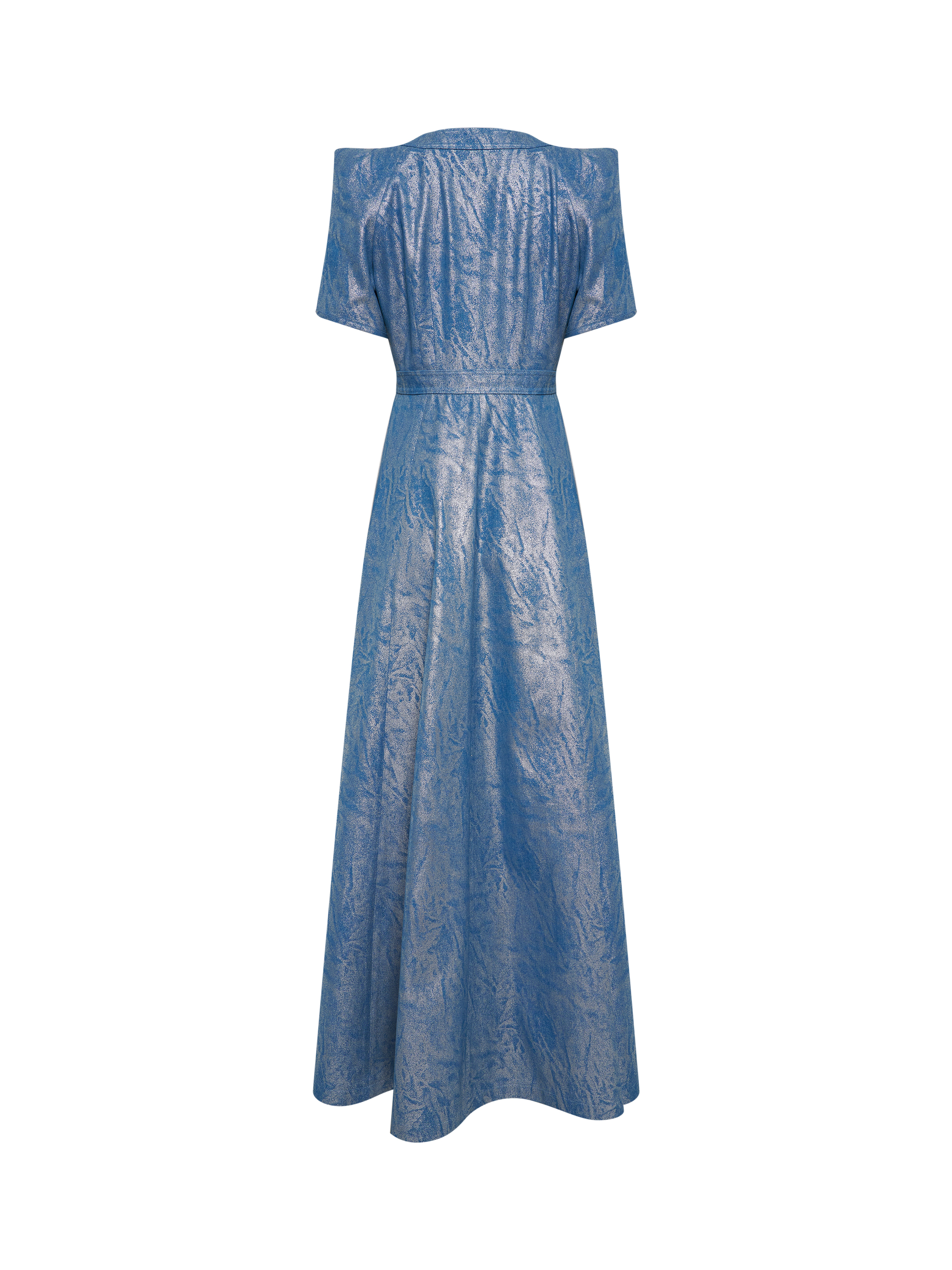 - Платье САВАННА из металлизированного денима в цвете shining blue (в золотисто-голубом цвете). Структурная ткань и крой формирует скульптурный силуэт